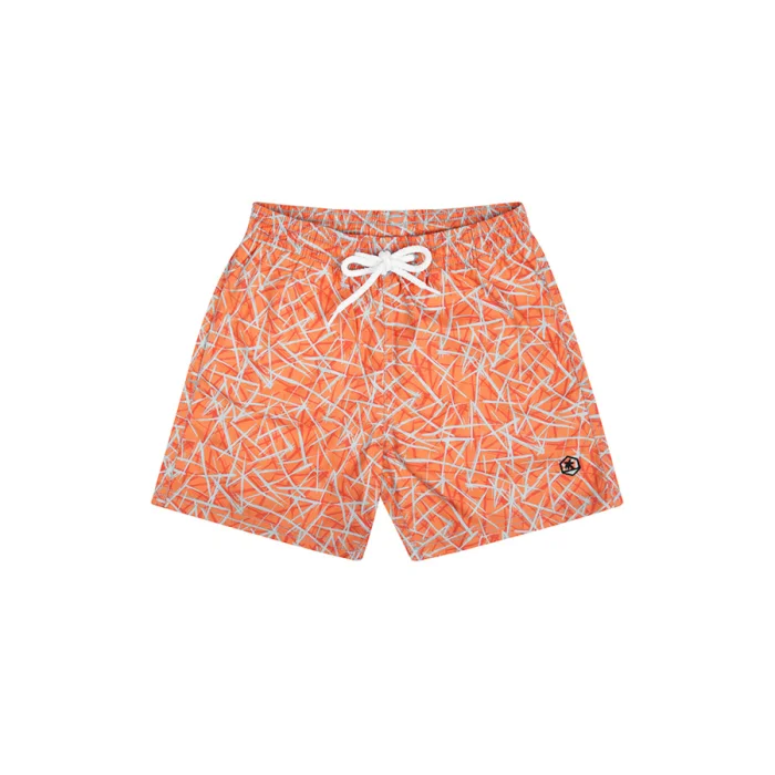 Orange printed swimming short.