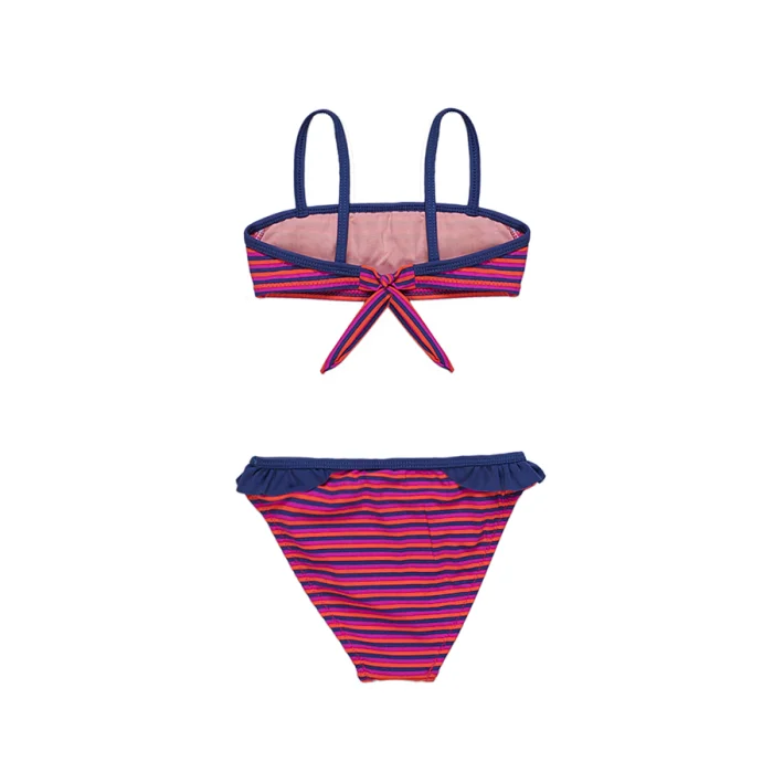'Stripe bikini set with navy frill and strap details.