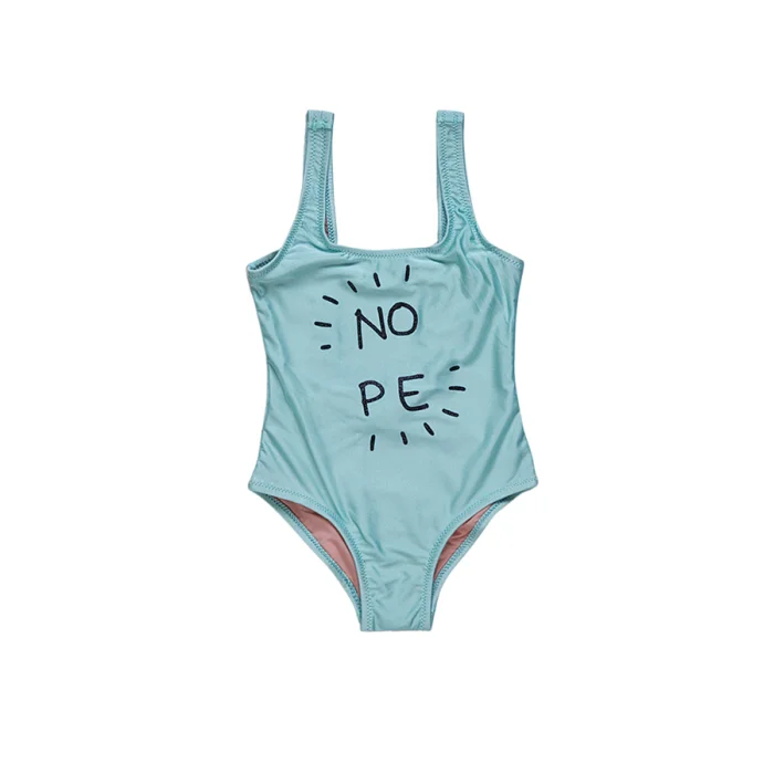 'Pink swimsuit with 'Today is the day' slogan black glitter print detail.