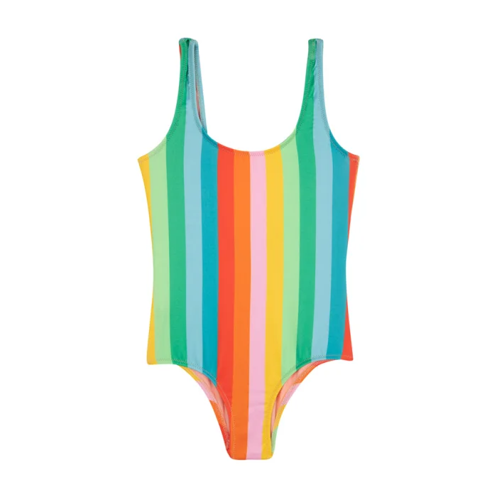 Colorful striped swimsuit.