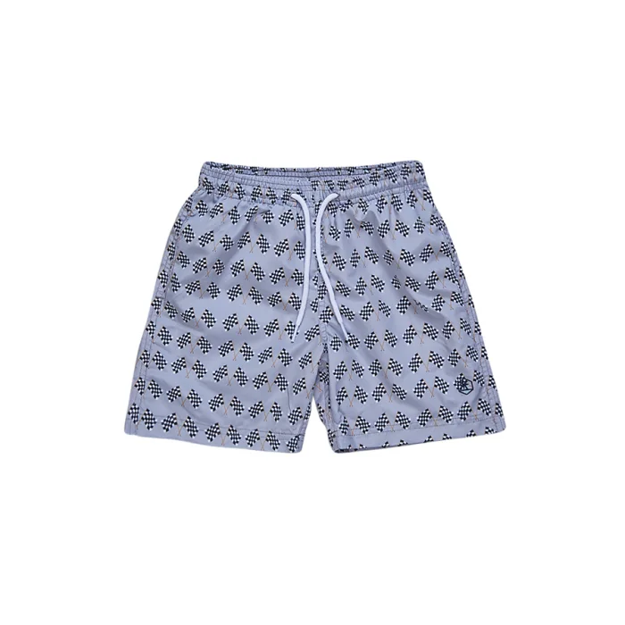 'Grey swimming short with flag print.