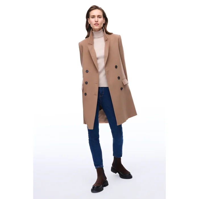 Pattern : Regular Fit Length : 92.1 Sleeve : False Sleeve Collar : Men's Collar Waist Length : 104 Chest : 102 Back Medium Length : 90.9 Sleeve : Long Sleeve Model Length : Above the Knee Weaving-Knitting : WOVEN Gender : Female Place of Production : Turkey Blend : 75% Polyester 22% Viscose 3% Elastane Closure Type : Button Season : 2024 - 2025 AUTUMN WINTER Model Length : 177 Model Chest : 80 Model Waist : 61 Model Hips: 89 Model Size: 36/S Age Group: Women's Sleeve Length: Long Sleeve