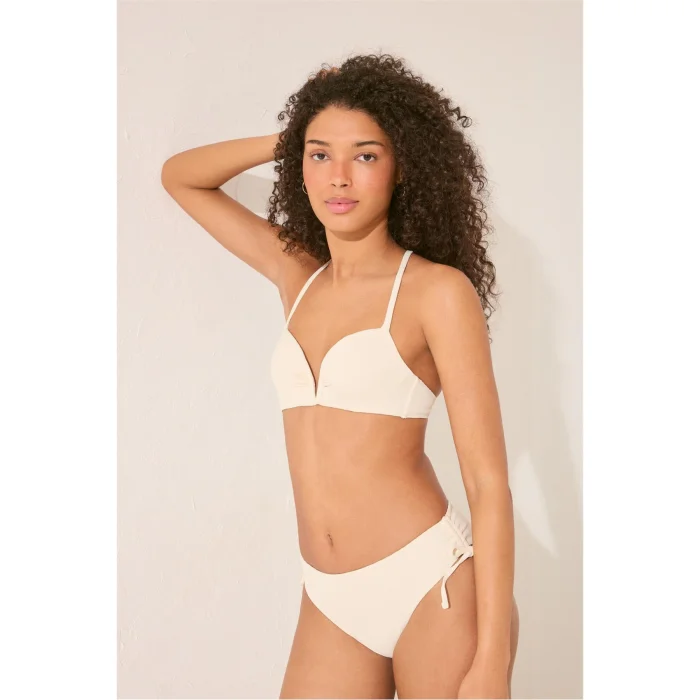 Offering a modern look with its textured form, this ivory high waist bikini bottom offers comfortable use with its flexible structure that fits the body comfortably. The high waist design creates a tidy effect and adds an elegant touch to the beach style. They are an ideal choice for those looking for a stylish, simple and timeless bikini bottom.