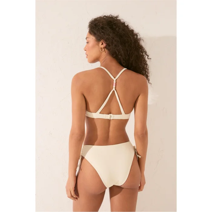 Offering a modern look with its textured form, this ivory high waist bikini bottom offers comfortable use with its flexible structure that fits the body comfortably. The high waist design creates a tidy effect and adds an elegant touch to the beach style. They are an ideal choice for those looking for a stylish, simple and timeless bikini bottom.