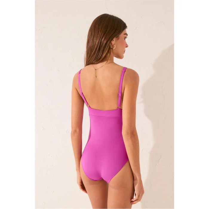 This purple bikini bottom, which gently hugs the body with its soft and highly flexible structure; It provides light and comfortable use all day long. Its vibrant purple hue achieves a modern and eye-catching harmony with different bikini tops. Thanks to its minimal design, it offers both a simple and impressive beach look. It is an ideal choice for those looking for a combination of style and comfort.