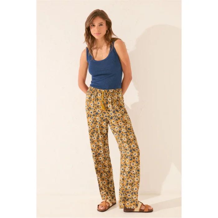 Offering lightness all day long with its comfortable fit and flowing viscose texture, floral patterned pajama bottoms combine comfort and elegance in home wear. While its soft surface gently touches the skin, it provides a fresh use thanks to its breathable structure. With its colorful and energetic pattern, it is an ideal piece of loungewear that adds a delightful touch to your wardrobe.
