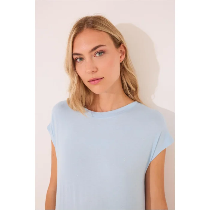 Standing out with its soft texture and flowing form, this nightgown with blue back detail is an ideal choice for those who want to add elegant comfort to their night routine. Its thin and flexible structure gently hugs the body and offers comfortable wear, while the modern detail on the back adds a feminine touch to the design.