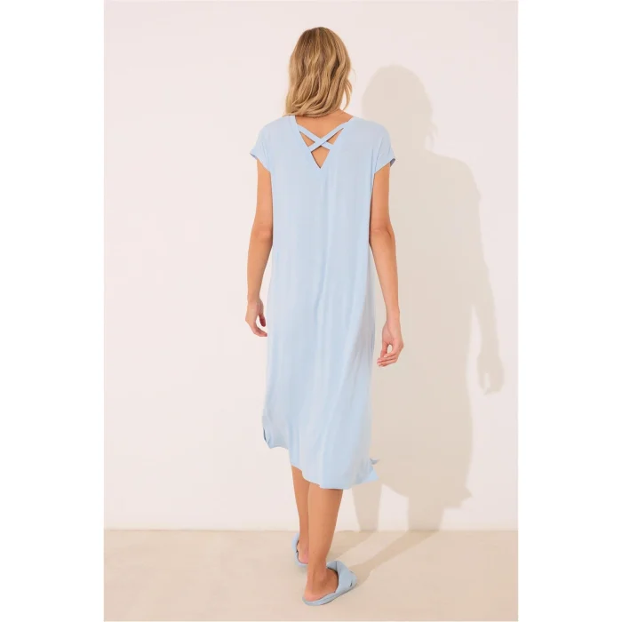 Standing out with its soft texture and flowing form, this nightgown with blue back detail is an ideal choice for those who want to add elegant comfort to their night routine. Its thin and flexible structure gently hugs the body and offers comfortable wear, while the modern detail on the back adds a feminine touch to the design.