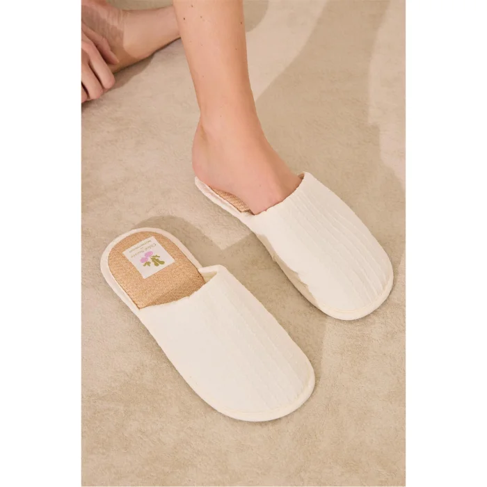 This ivory slipper, which gives a soft feeling to the steps with its comfortable sole and warm texture; It adds an elegant touch to home style with its minimal design. Thanks to its natural tone, it easily adapts to any style. It offers a lightweight, practical and modern house slipper alternative for daily use.