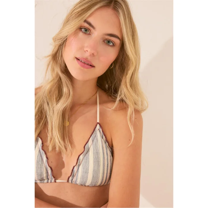 A modern bikini top that adds a simple elegance to the beach style with its soft texture and natural look. Its lightweight structure adapts to the body and offers comfortable use, while the minimal elegance of the gray tone elegantly complements the summer wardrobe.