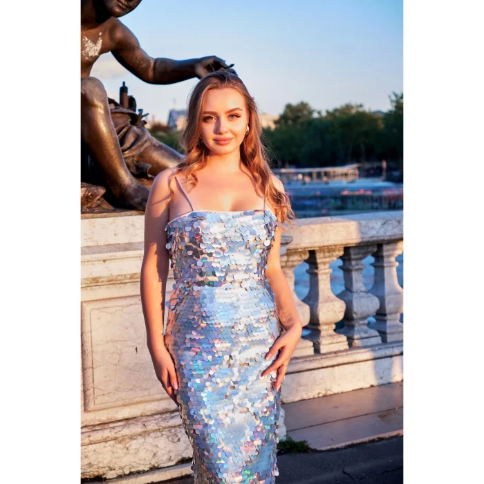 Product: Ariel Hologram Sequin Midi Dress With Bolero Set