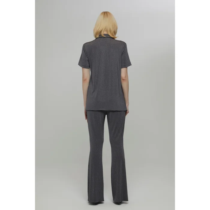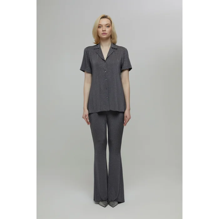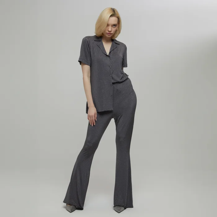 Product: Crystal Stone Gray Flare Trousers Nicole