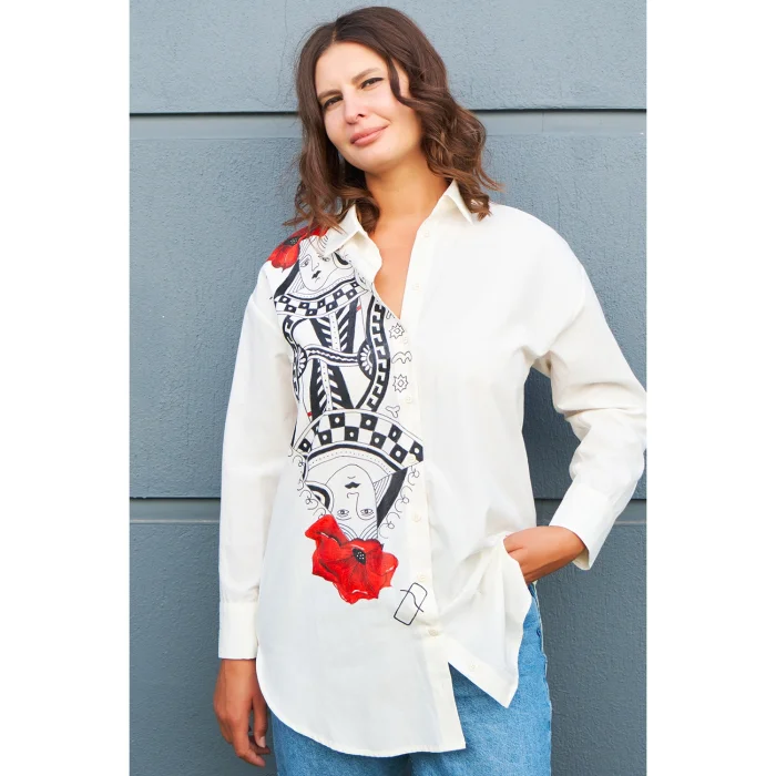Queen Of Hearts Oversize Shirt Hand Painded