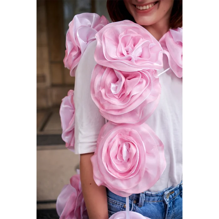 sewn on Satin Ribbon Rose Accessory length is about 3m.