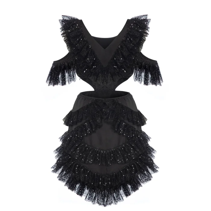 Product: Sequin Cut Out Detailed Ruffled Mini Dress Viva