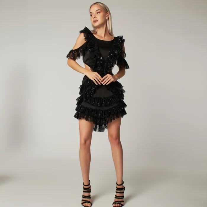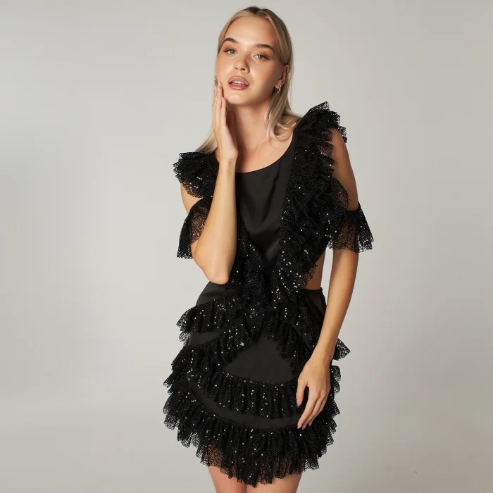 Product: Sequin Cut Out Detailed Ruffled Mini Dress Viva