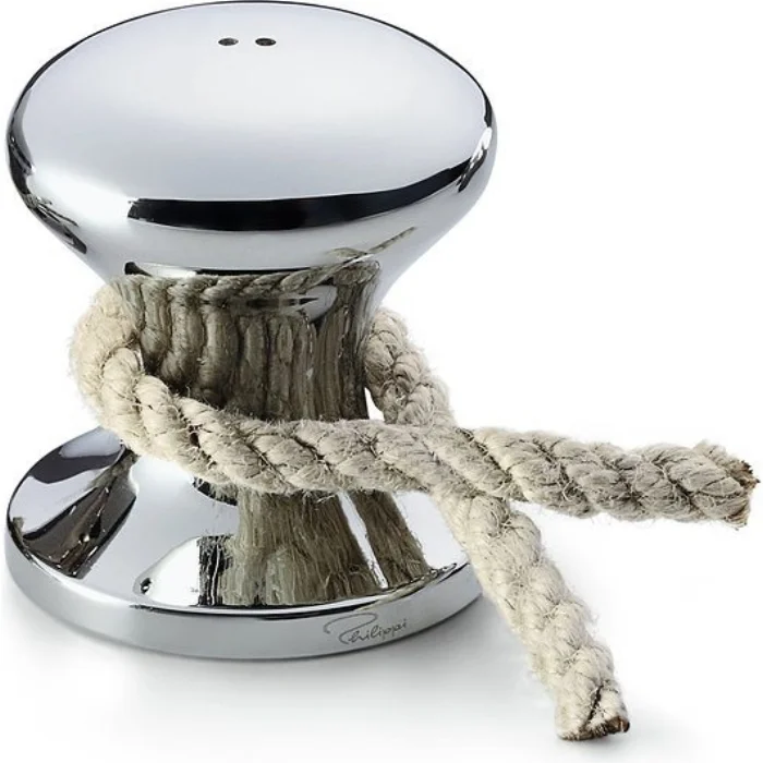 Hamburger Streuer Rope Salt Shaker for salt and pepper guarantees a stylish nautical-themed docking maneuver at any dining table. Designed in the shape of a mooring mast of a dock, they have a non-slip center and a playfully placed rope; In this way, they can be securely held in the hand during spice addition. For the shiny silver salt and the glossy black pepper, the pair promises a free hanseatic look with a striking color combination.