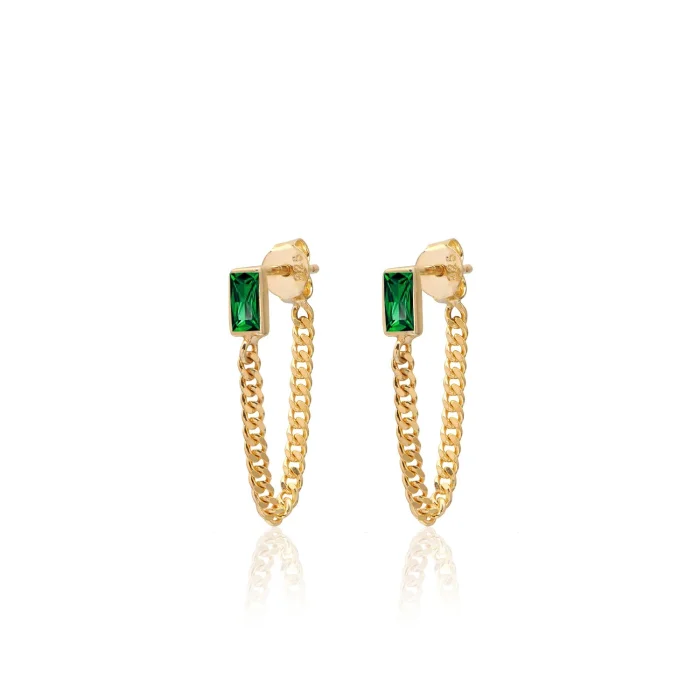 Silver chain earrings with baguette cubic zirconia