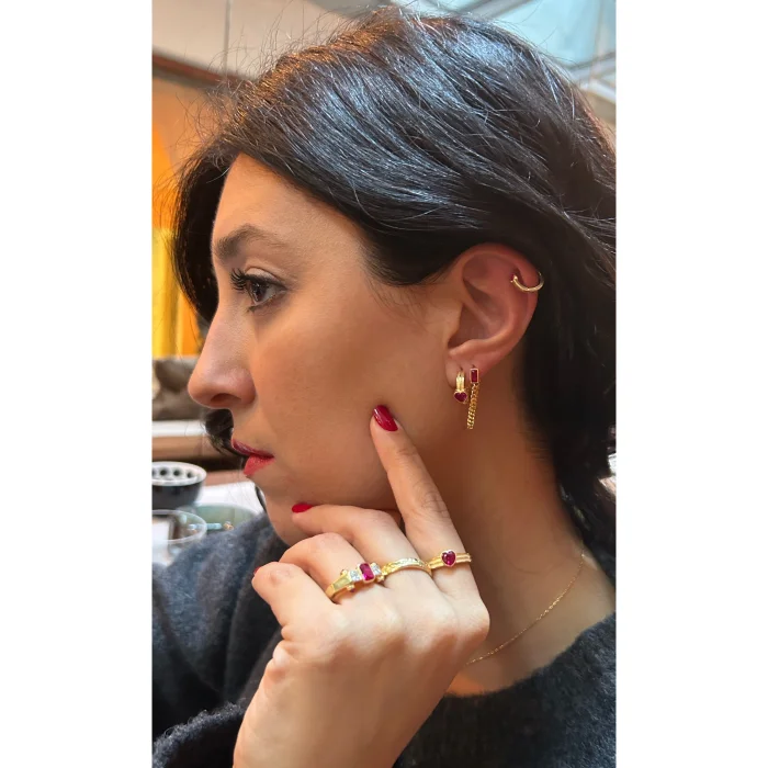 Product: Cadea Silver Chain Earrings With Stone
