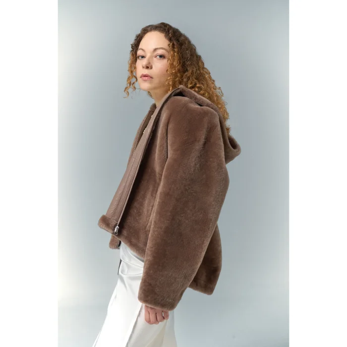 Andjelic Shearling Hoodie Jacket – Mocha Mousse – Relaxed silhouette with hood, cut from Merino shearling with an exceptionally soft handfeel. Designed for quiet protection and ease, the jacket carries a fluid weight while the hood adds presence and modern comfort. Made in Turkey, exclusively made to order.