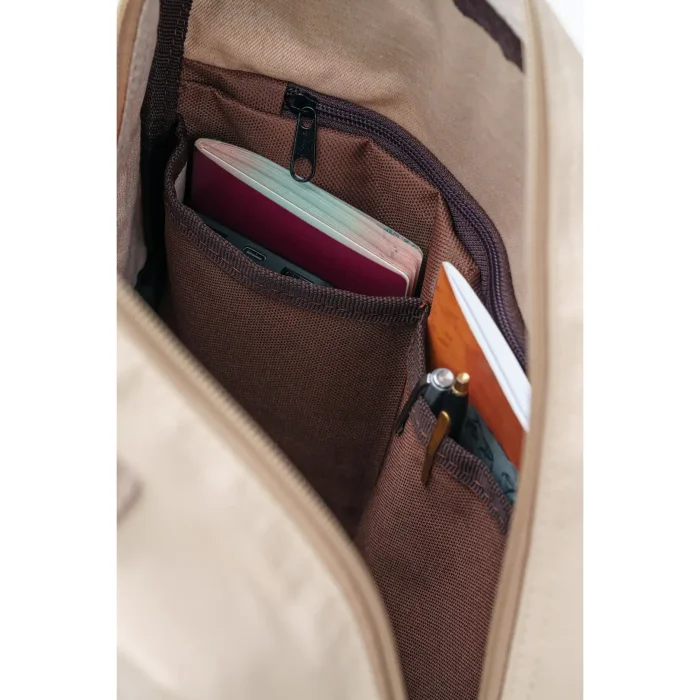 The spacious main compartment, front pocket, and side pockets help keep belongings organized. The padded back panel and shoulder straps provide all-day comfort while helping protect laptops and personal items from impact.