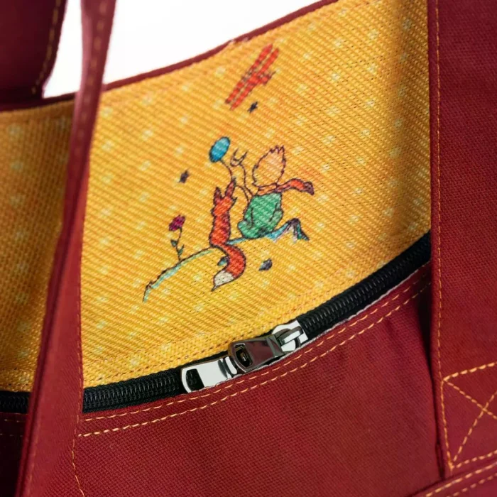 The main body is made from 100% durable canvas fabric, offering long-lasting use. Printed areas are produced using recycled fabric and water-based dyes, reflecting an environmentally conscious production approach. The inner illustration of The Little Prince gives the bag a unique and expressive identity.