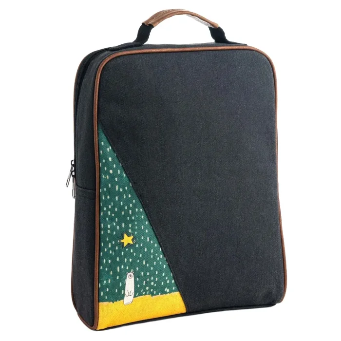 Product: Modern Minimal Design Black Polar Bear Pattern Canvas Laptop & Backpack With Artistic Panel