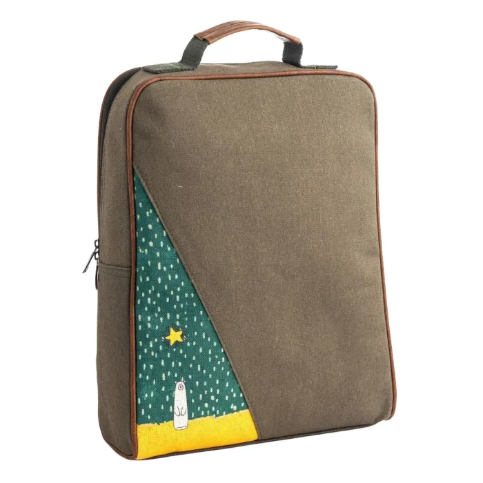 Product: Modern Minimal Design Black Polar Bear Pattern Canvas Laptop & Backpack With Artistic Panel