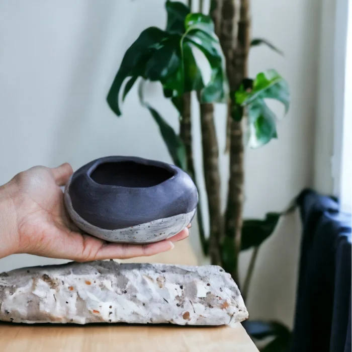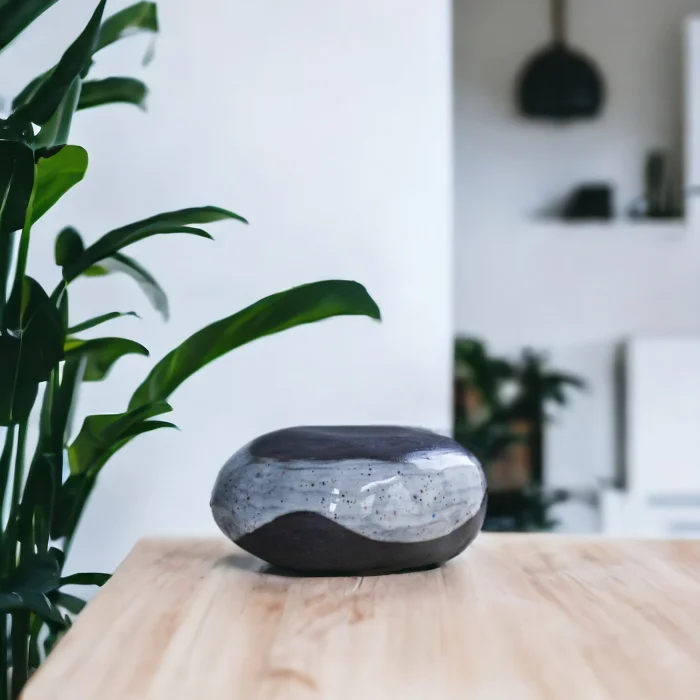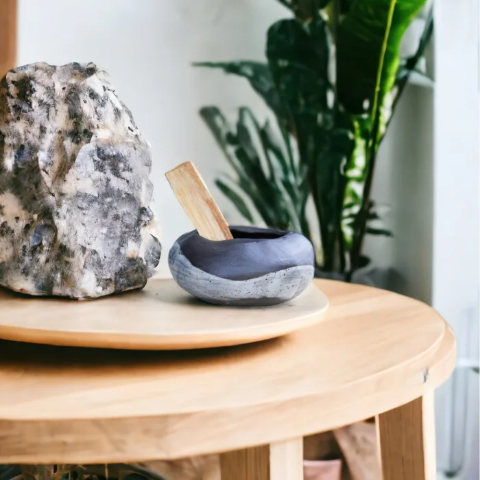 Custom design Stoneware Ceramic Candle Holder-Incense Holder-Palo Santo Plate. This product, which is completely hand-shaped with inspiration from natural stone forms, is heat resistant as high-grade stoneware ceramic clay is used. This product, which can be used for multiple purposes, can also be used as an incense holder by filling it with stones. You can also use it as a pot for small plants, as well as for burning palo santo.