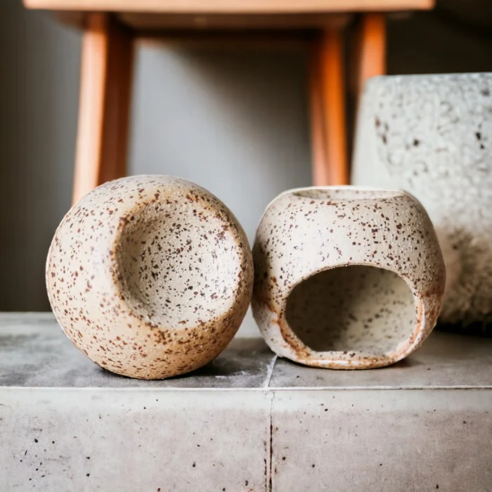 Handmade Stoneware Ceramic Censer. Width; 7 cm. Altitude; 7 cm. Chamber diameter; 4.5 cm. It was hand-shaped with high-grade mud. Heat resistant. It can be used as a censer by placing a tealight candle in its chamber or it can be used for palo santo burning.