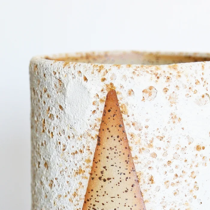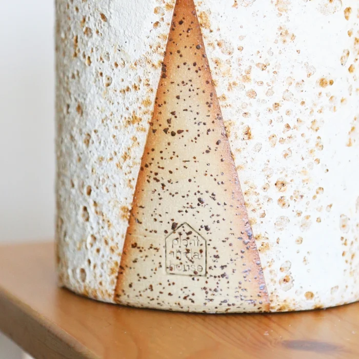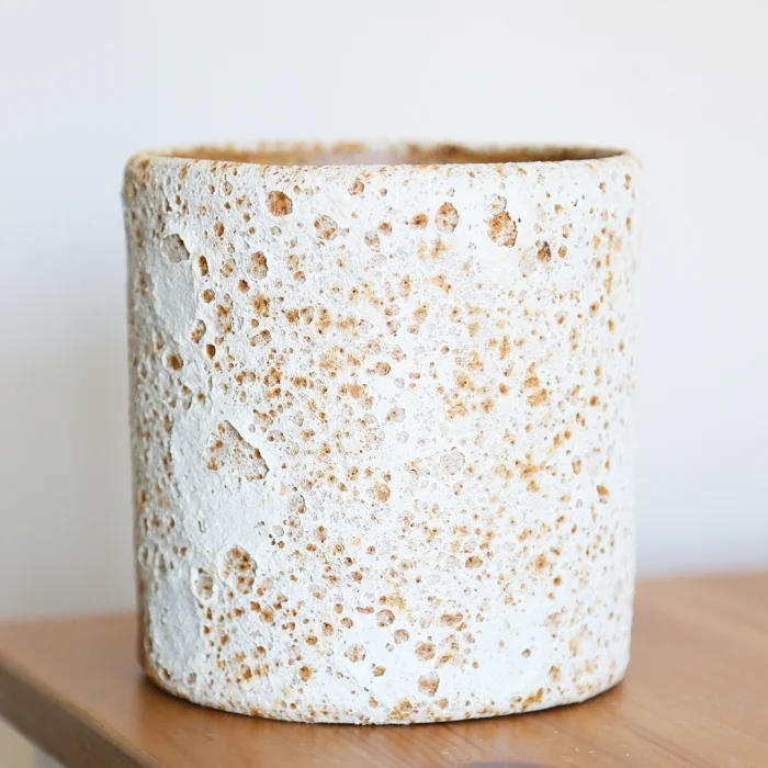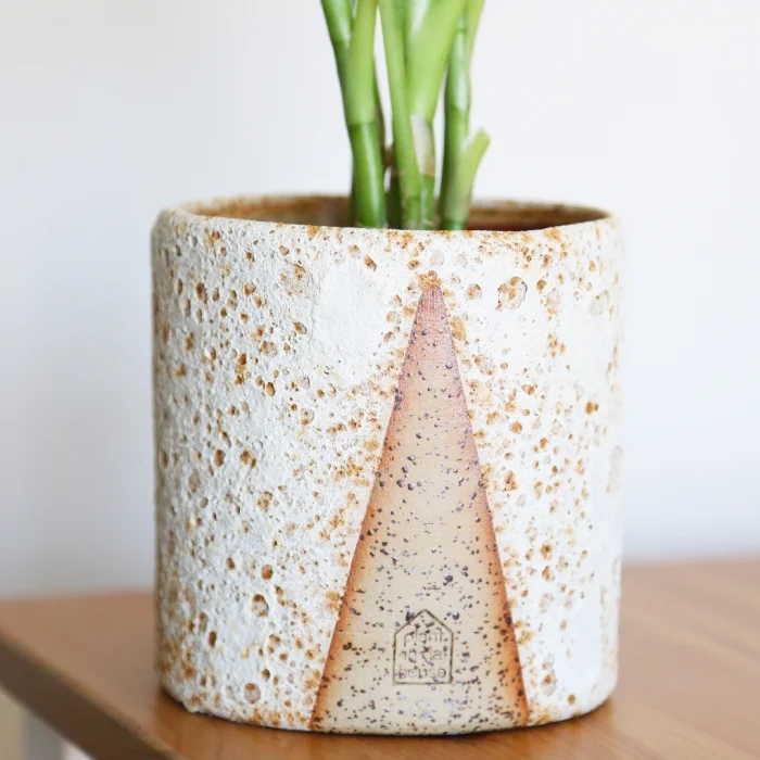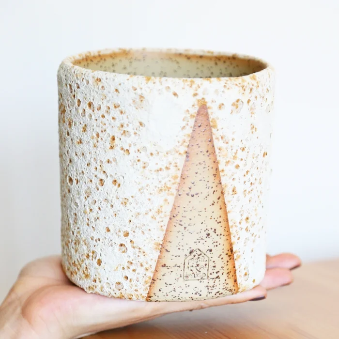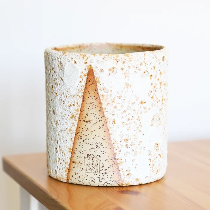 Hand sculpted Stoneware Ceramic Flower Pot. Mouth width; about 10 cm. Height; about 12 cm. It was shaped by hand using high-effect clay. Drain hole. Glazed with a white magma-like glaze.