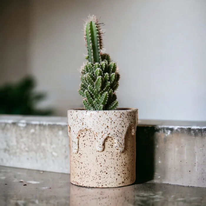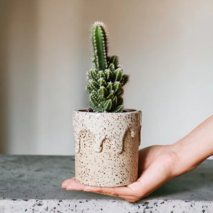 Handmade Stoneware Ceramic Flower Pot. Width; approx. 7.5 cm. The height was approximately 9 cm. Shaped by hand using high-grade mud. There is no drainage hole. Baked at 1230 degrees. Suitable for indoor and outdoor use. It does not contain toxic substances. The plant in the image is used for decorative purposes, only vases will be sent in your order.