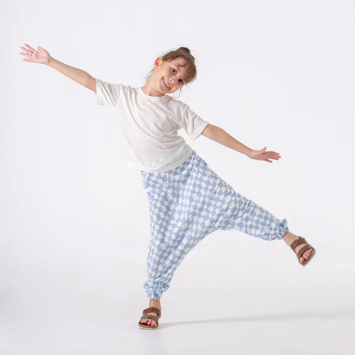 Blue and White Checkered Pattern, 100% Organic Cotton, Elasticated Waist Children's Pants Shalwar are with you for the little ones to spend this summer comfortably and stylishly! Cloud Shalwar is produced for your little ones to be stylish and comfortable. Your children will have a lot of fun and move freely with our fun, comfortable and breathable product collection with 100% Cotton fabrics that will suit your child very well this summer with the Plant Mini Kids style! Our products for our little ones are carefully checked and packaged in a sterile environment. We recommend that you wash our products on a 30°C gentle program and do not throw them in the dryer. Blue and White Checkered Pattern, 100% Organic Cotton, Elasticated Waist Children's Trousers Shalwar consists of a simple and stylish concept. It consists of fun checkered patterns consisting of Blue and White colors. The elastic waist ensures that your child is comfortable. It offers an ideal fabric experience for the summer months. It promises long-lasting use with its quality fabric and seams. It is specially produced by Plant Mini Kids in order not to compromise on special movements for your little ones. When ordering, we kindly ask you to order according to your child's size and age range.
