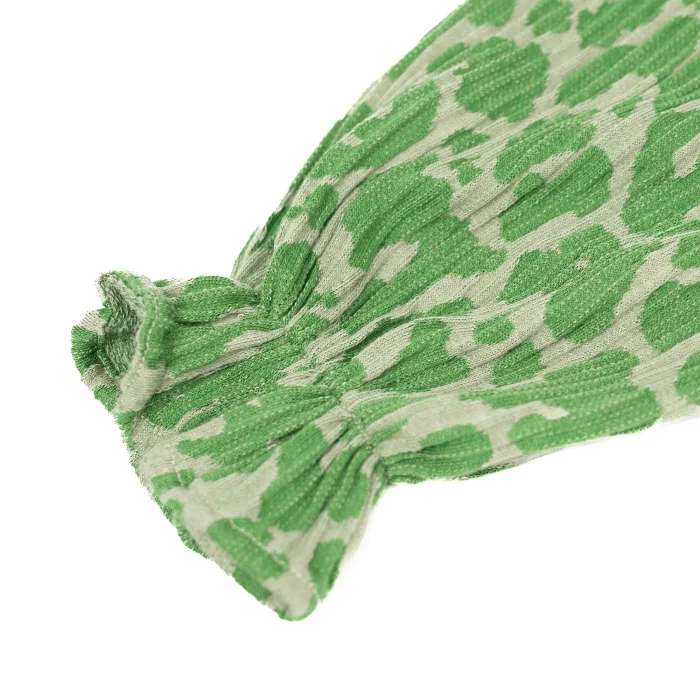 The green patterned long-sleeved girls' dress offers comfortable use with its soft and breathable fabric, while it can be easily put on and taken off thanks to the button detail on the back.