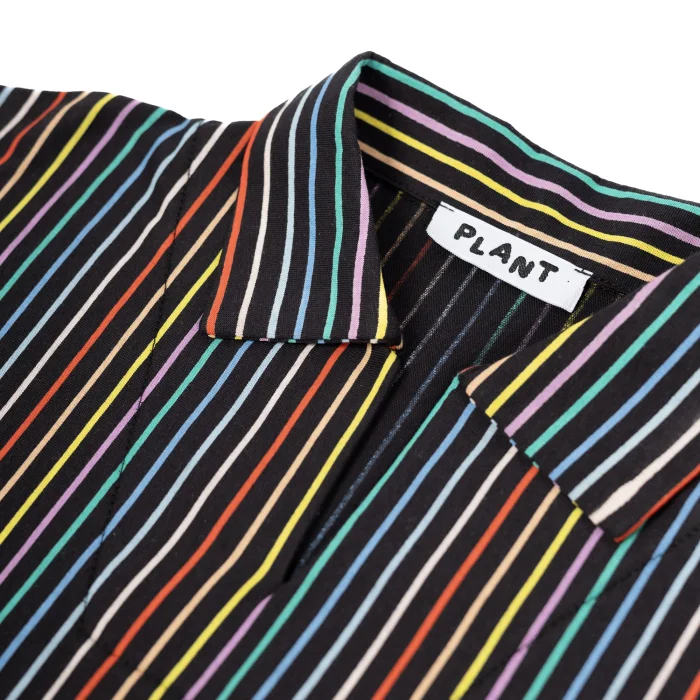 Offering comfortable use with its light and soft-textured fabric, this colorful striped shirt with a black background adds an energetic look to daily combinations with its modern cut and flexible structure.