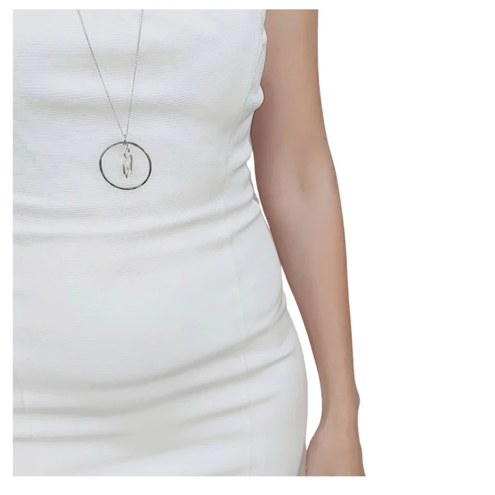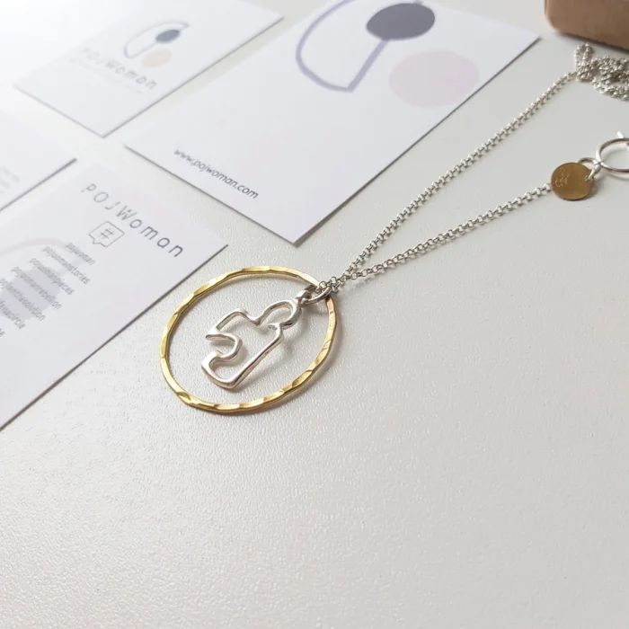 Material: Symbol piece cast into 925 sterling silver with the lost wax technique; It is a design in which it continues its cycle in a brass moiré forged with a hammer by hand. Presented with silver long chain (chain length 70cm).