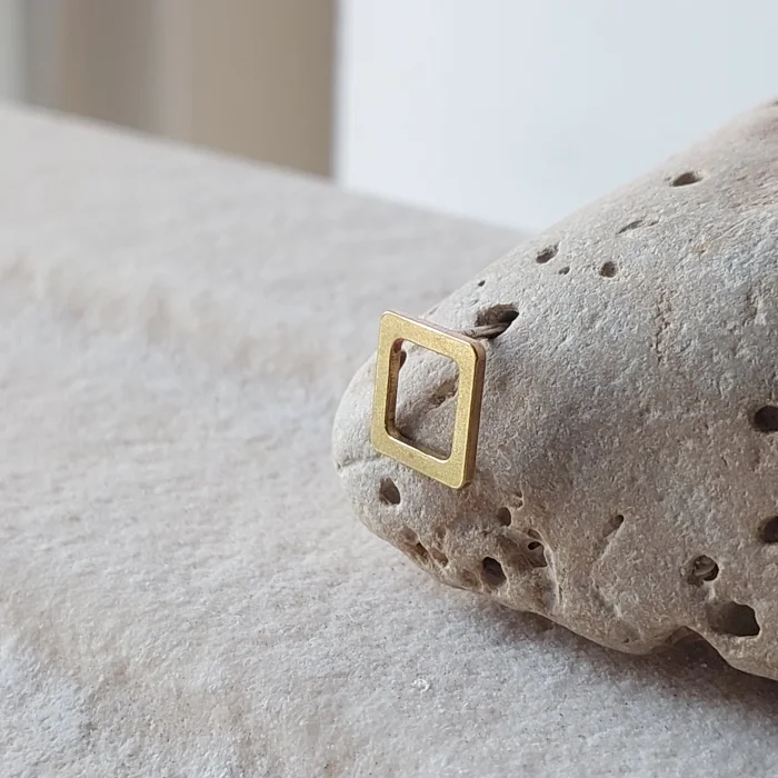 The ear plugs of the brass geometric earrings are silicone; ear pins are 925 sterling silver.