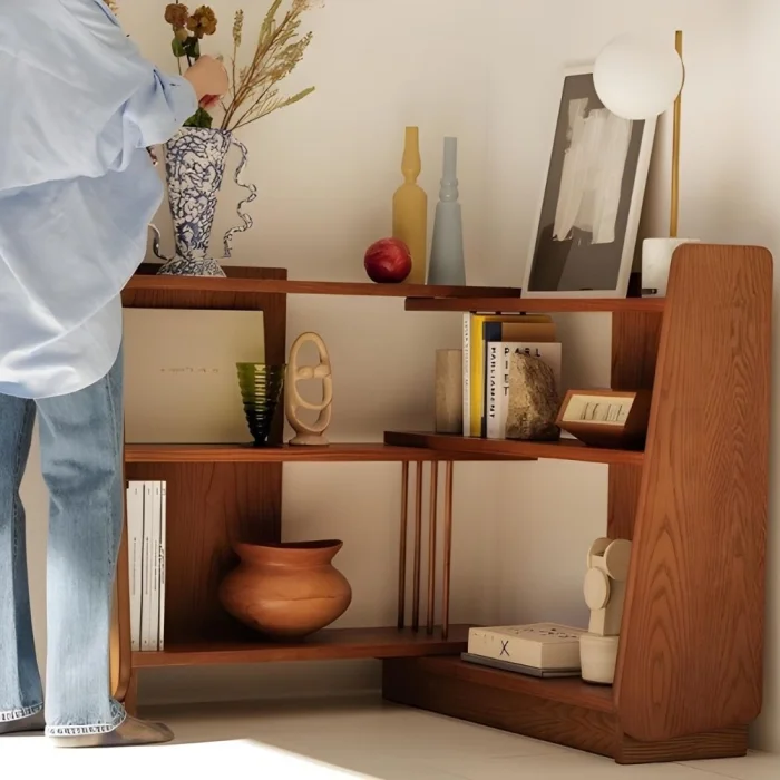 With its natural wood appearance and solid structure, you can display your books, magazines, décor objects and plants aesthetically. Thanks to the shelf spacing (23–38 cm) offered in different heights from the upper shelf section to the lower part, it creates optimum storage space for both your large and small objects.