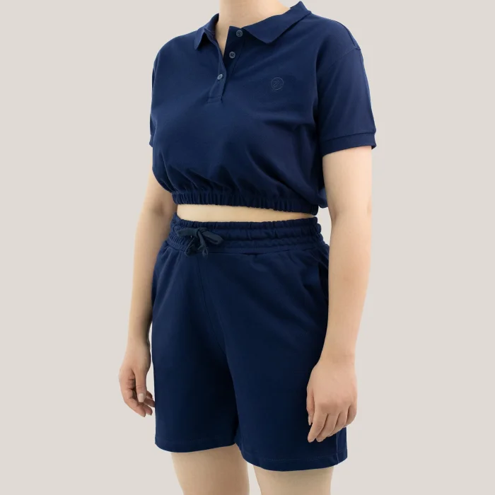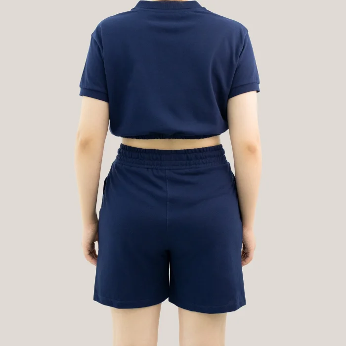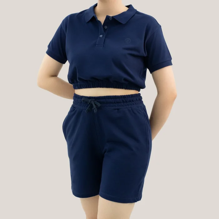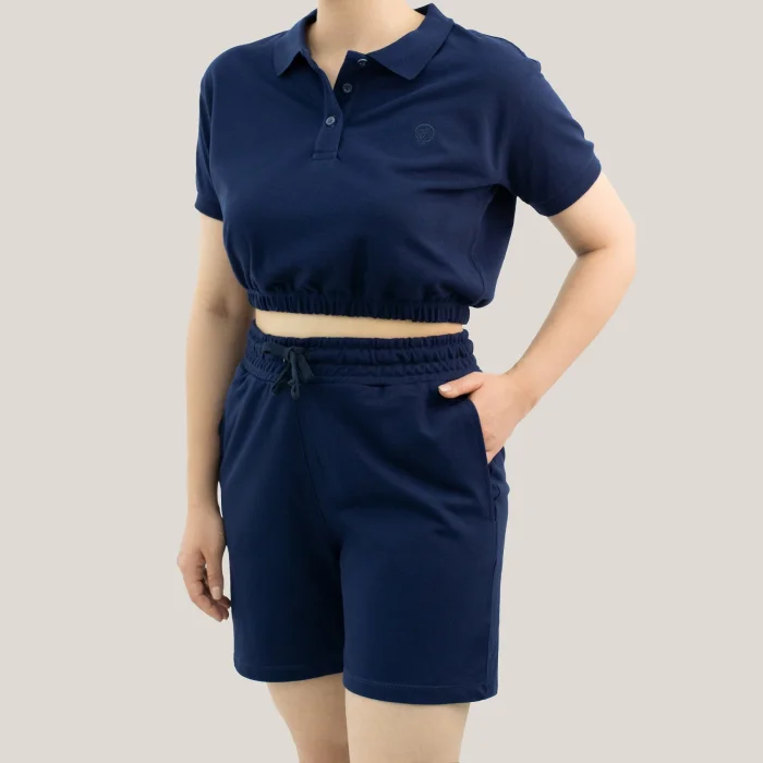 Pour Pur Women's Polo Neck Crop T-Shirt Shorts Set, provides you all day comfort with its soft texture and cotton fabric. Thanks to its breathable fabric, your skin stays more comfortable and dry. Crop t-shirt has elastic waist. The instructions are printed on the product, not an annoying label. Our brand logo is embroidered on the chest of the product with a quality embroidery. Material:95% cotton, 5% elastane.