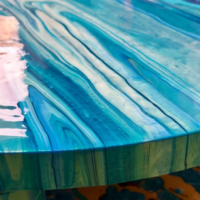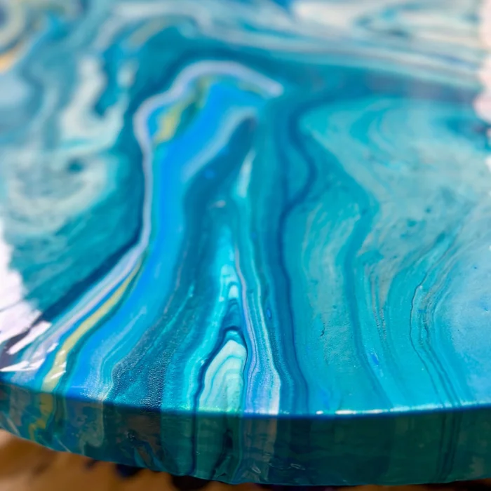 Acrylic pouring technique was applied on the canvas and glossy varnish was used for its surface.