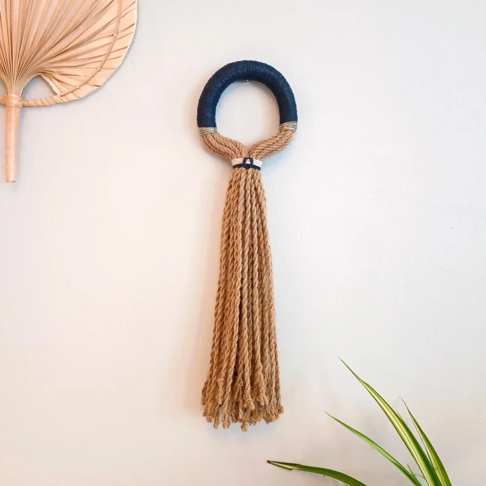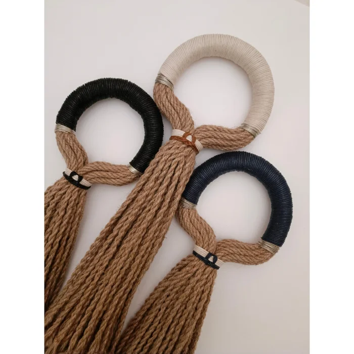 It was designed with waxed cotton threads left over from our giz jute ropes and bag productions. You can combine it with pleasure in entrances, living rooms, verandas and balconies. Each product is handmade, so sizes and colors may vary slightly.