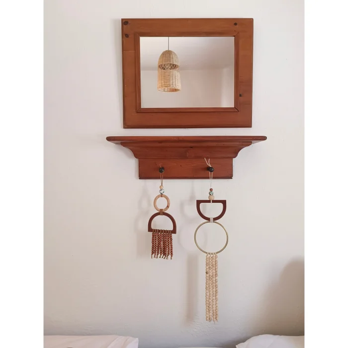 Ilya was designed with raw wood with half-moon and circular-shaped apparatuses, then decorated with bead columns. You can combine it with pleasure in entrances, living rooms, verandas and balconies. Each product is handmade, so sizes and colors may vary slightly.