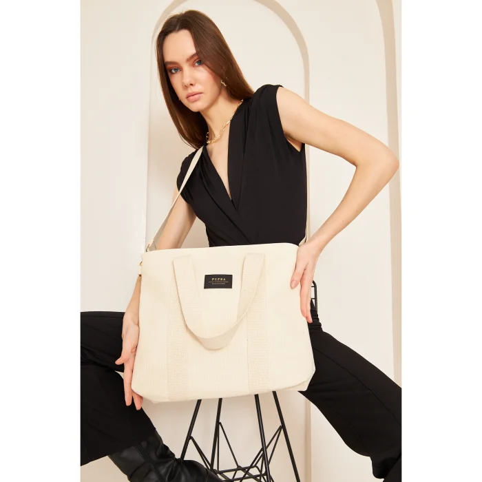 Custom Faux Leather Fabric Cotton Woven Lining Woven Column Metal Zipper Recycled Leather Label Inner Zipper Pocket Sleeve and Cross Strap Use Size ; 11 cm x 33 cm x 38  Cleaning ; Wipe with a damp cloth.