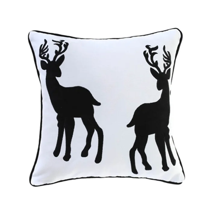 Designed on soft chenille fabric, this cushion cover features two elegant deer silhouettes created with precise laser appliqué workmanship. Its rich texture and contrasting motif make it a standout piece for winter styling. Perfect for adding a refined, seasonal character to sofas, armchairs, and cozy corners.
