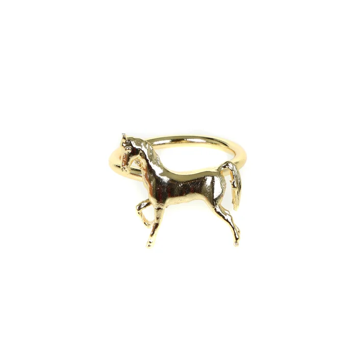 Inspired by the graceful form of a horse, this solid brass napkin ring brings a sense of strength and sophistication to your table. The warm golden tone and sculptural detail pair beautifully with linen napkins, creating a refined and timeless setting. Made of solid brass, it is tarnish-resistant and preserves its shine for years.