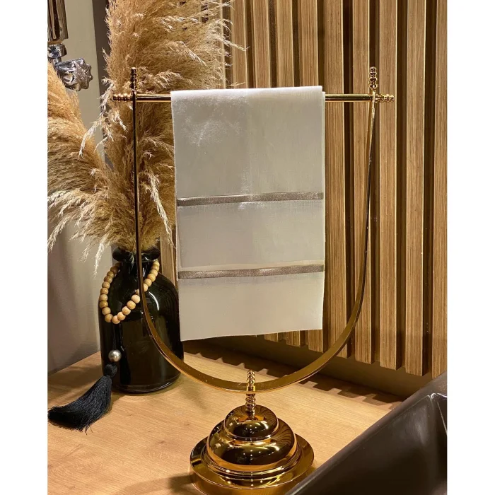 This countertop towel holder is handcrafted and adds a warm glow to your bathroom with its elegant brass details. It does not tarnish over time with their oxidation-resistant structure. The total measurements of the product are 48 × 27 cm; These dimensions also include the most protruding points at the top and sides. It offers long-lasting use with its aesthetic and durable structure.