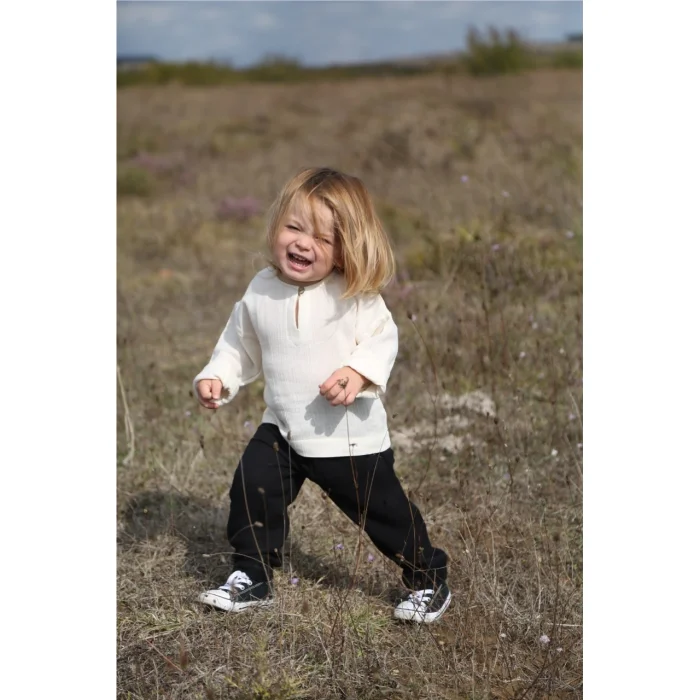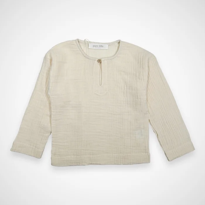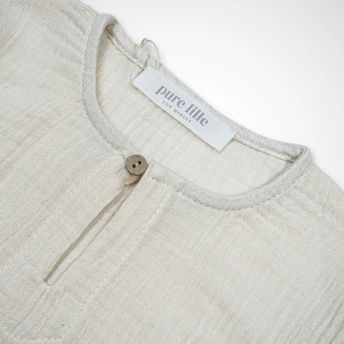 A GOTS and Oeko-Tex Standard 100 certified shirt, made from 100% organic cotton and double-layered muslin fabric, offers a sustainable structure that is both eco-friendly and safe for children’s health.