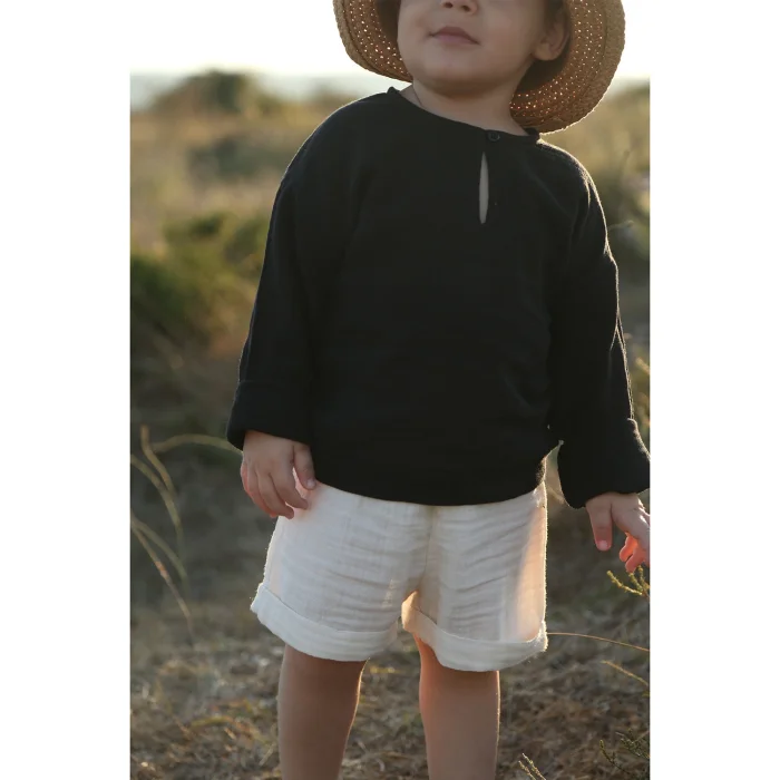 A GOTS and Oeko-Tex Standard 100 certified shirt, made from 100% organic cotton and double-layered muslin fabric, offers a sustainable structure that is both eco-friendly and safe for children’s health.