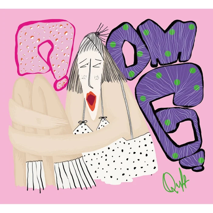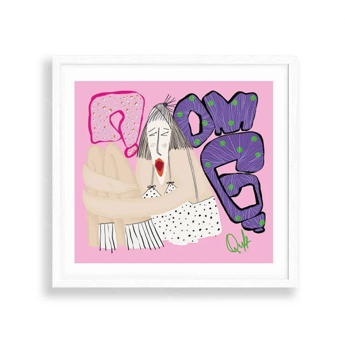 Oh my God! Illustration. It is a digital edition of E. Büşra Tekin's original digital illustration. It is dated 2023. Printing: Fine Art Material: High quality printing paper. Colors: Printed with vivid and durable inks. The work will be signed and sent by the artist. Its frameless size is 35×34 cm. It is framed. Passepartout thickness is 2 cm, frame color is white, 1 cm thick.