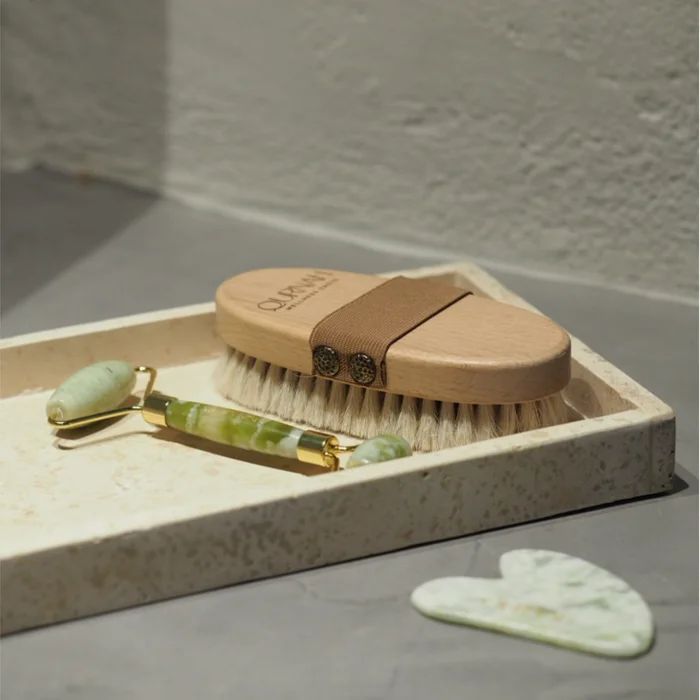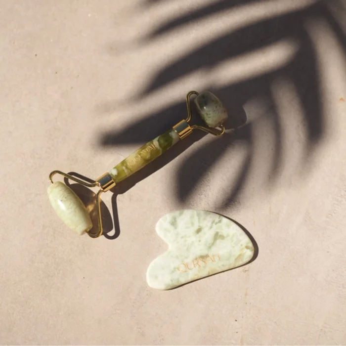 Quartz Jade Roller Physically, it helps to tighten the skin with a gentle massage. It also promotes detoxification through the lymphatic system, which is the body's main detoxification system. Quartz Gua Sha massages the skin to help reduce puffiness and contour facial contours on your face, while also promoting the appearance of visibly glowing skin. The products are shipped together in their own special pouches.